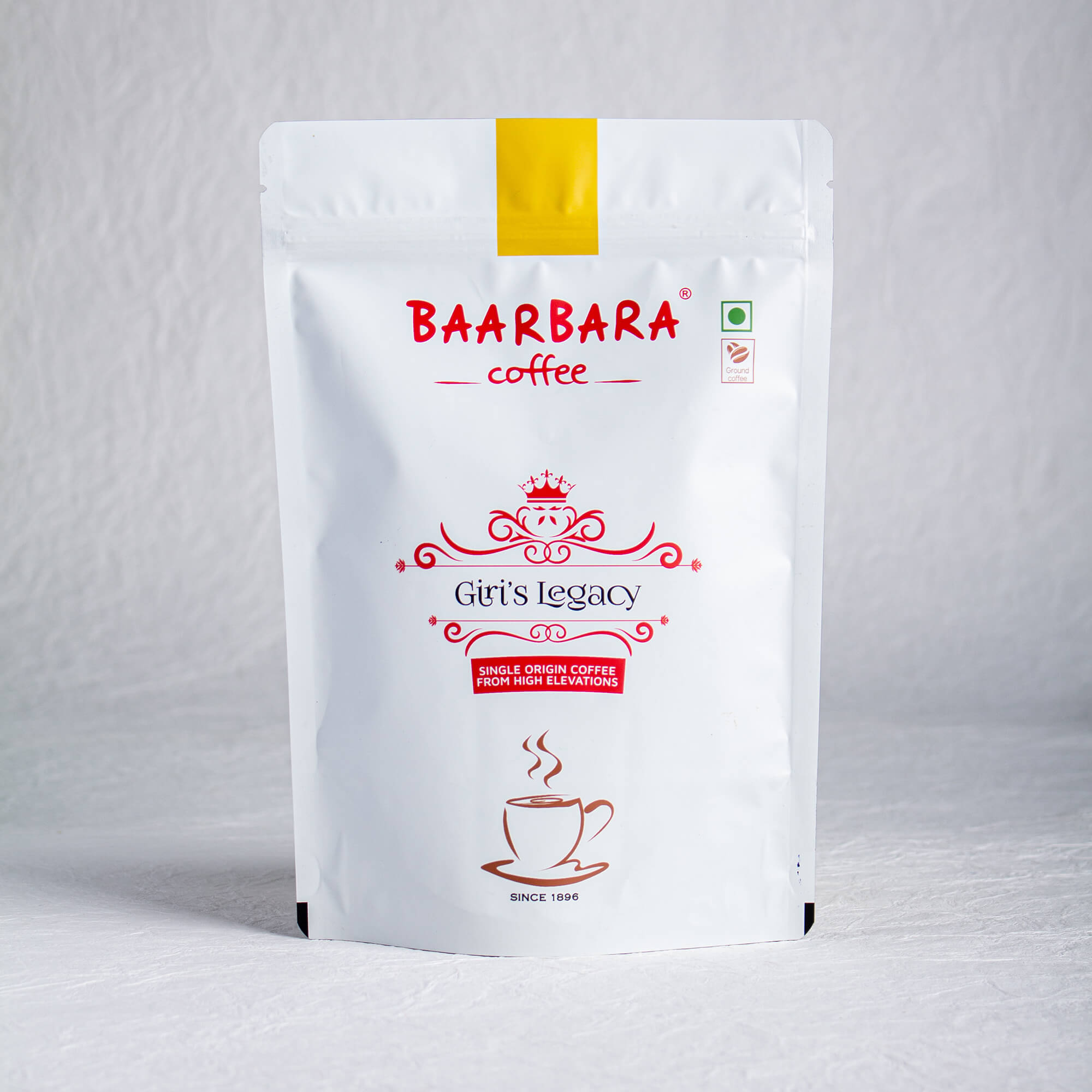 Having used Baarbara Coffee's Arabica and Giri's Legacy, I find the beans to be of superior quality and the taste suited to the Indian palette. Many friends have complimented me on my brewed coffee as one of the best ever tasted by them!